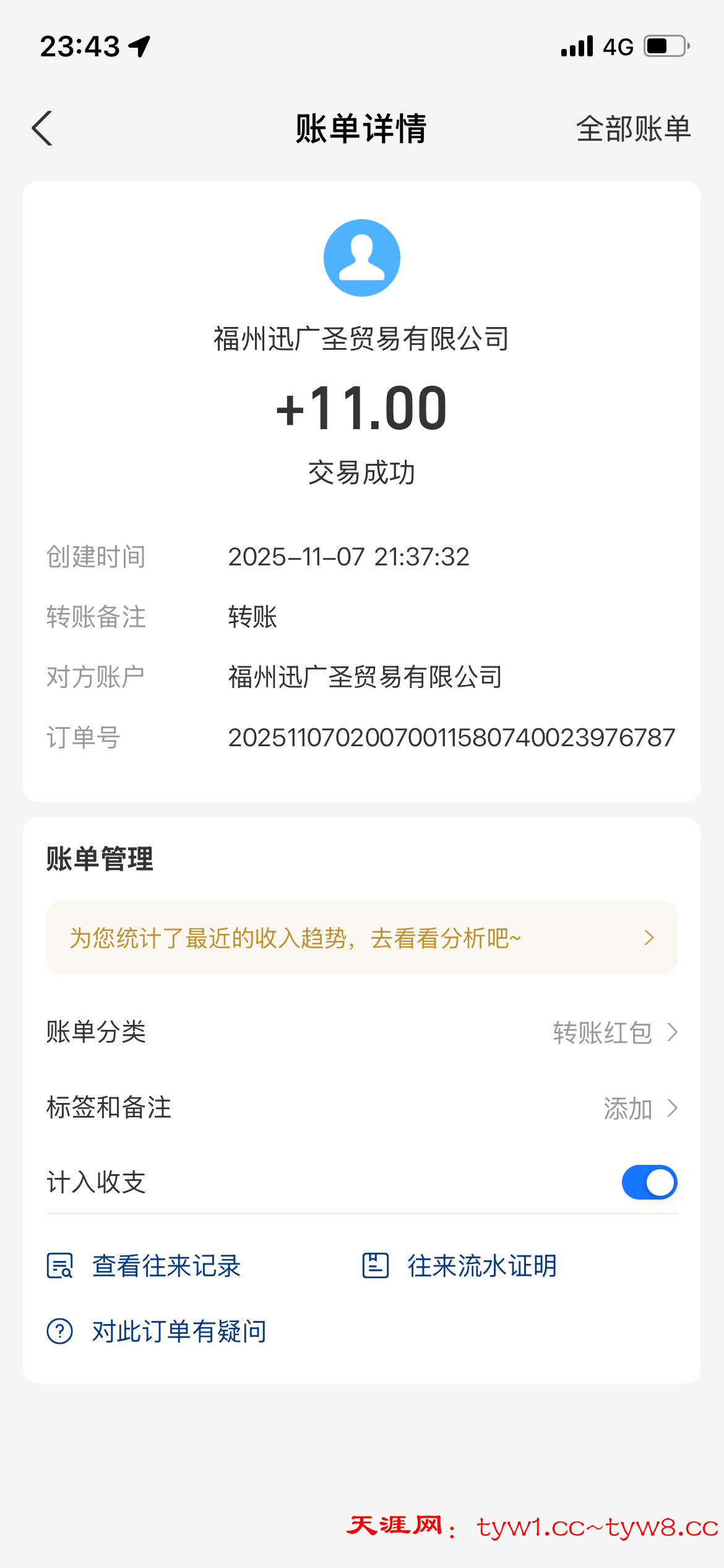 到账了