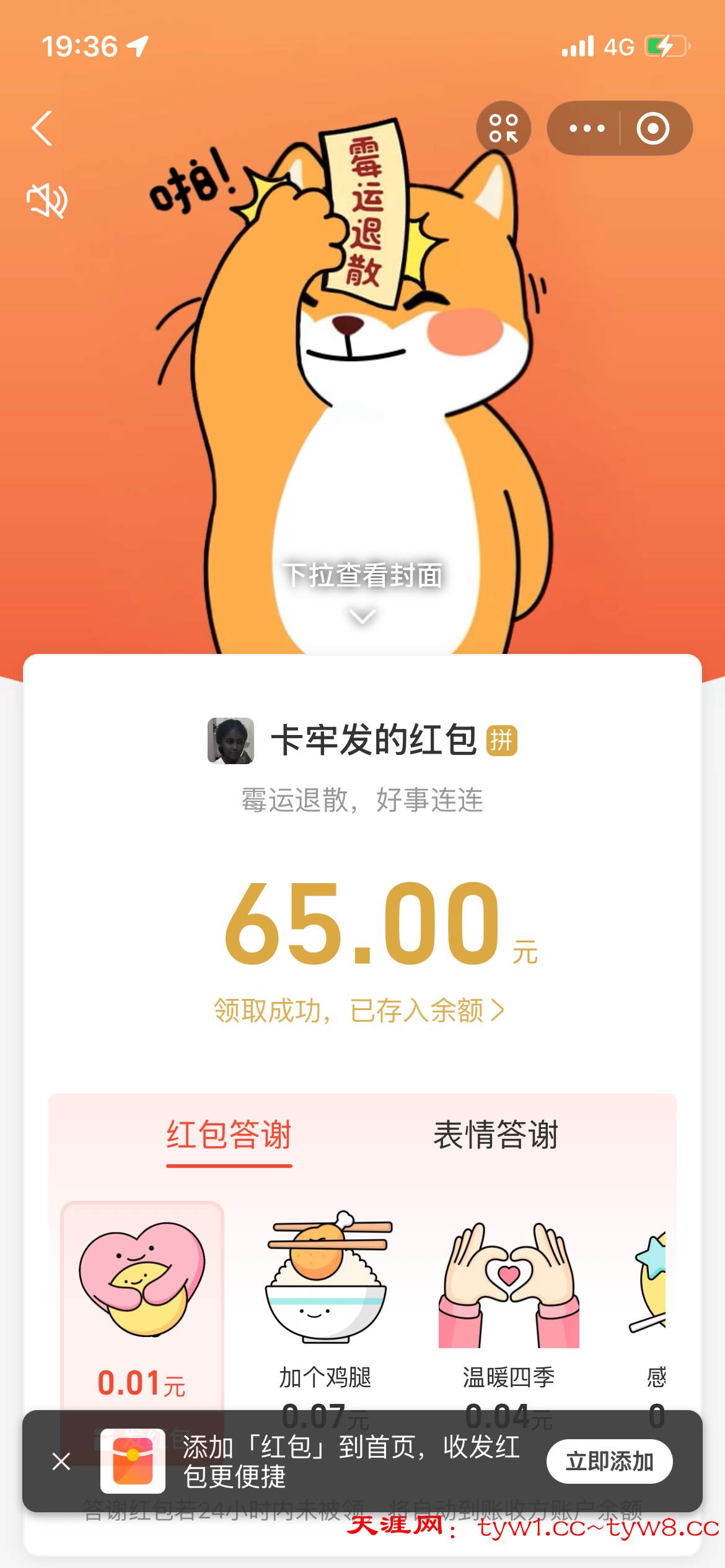抽奖到账感谢