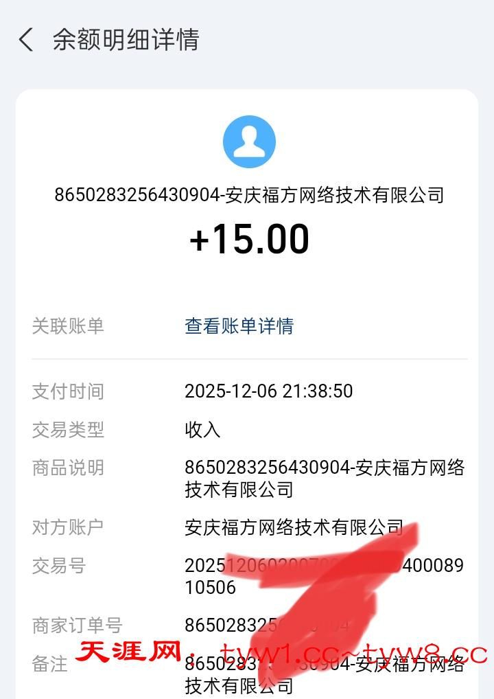 到账15