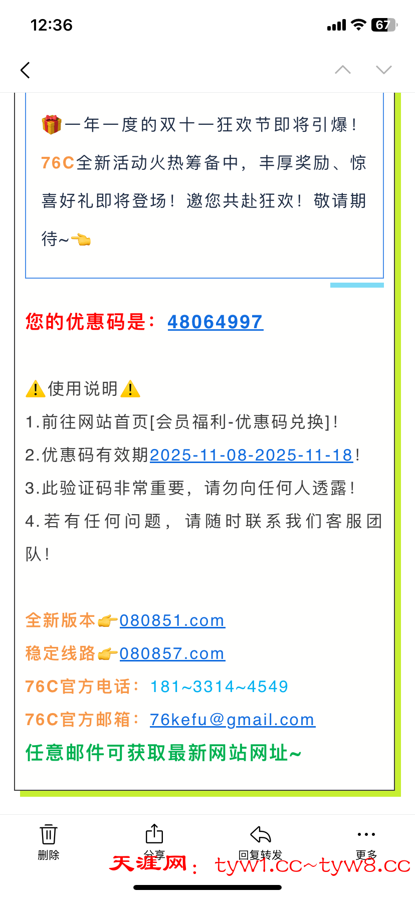 【76c 又发邮箱优惠码了 注意查看垃圾箱】
