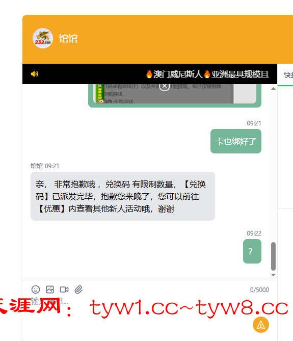 09:22亲, 非常抱歉哦 ,兑换码 有限制数量,【兑换码】已派发完毕,抱歉您来晚,您可以前往【优惠】内查看其他新人活动哦,谢谢谢