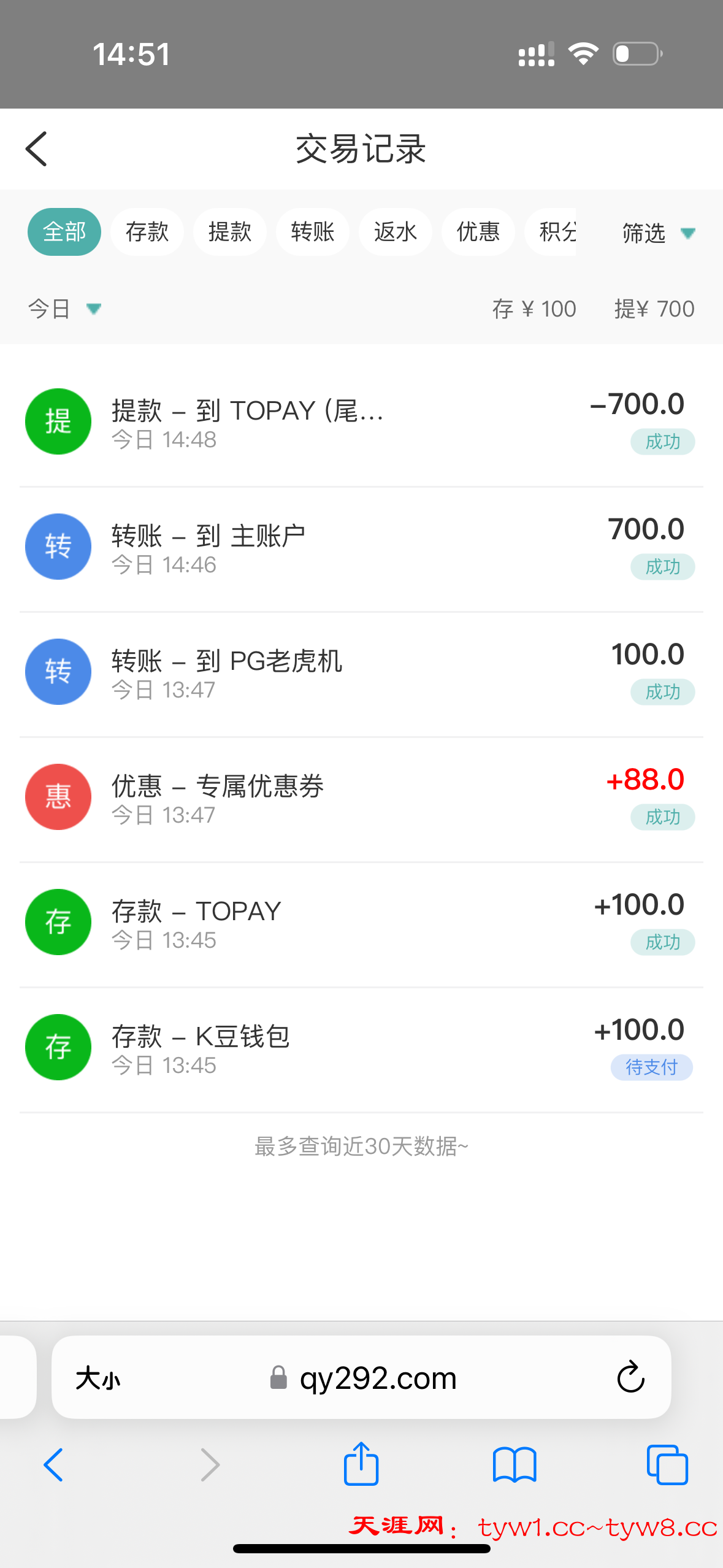 老号7天不上就有了,100+88,今天感觉有点水,提了700
