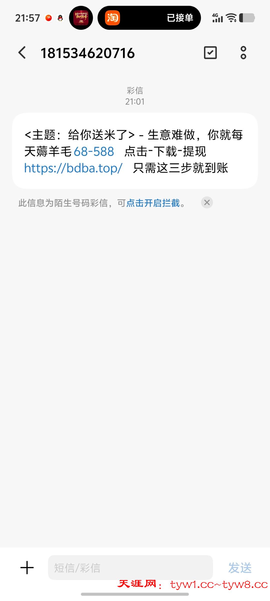 收到这个短信的 或者拿图去碰瓷看看 送了我108