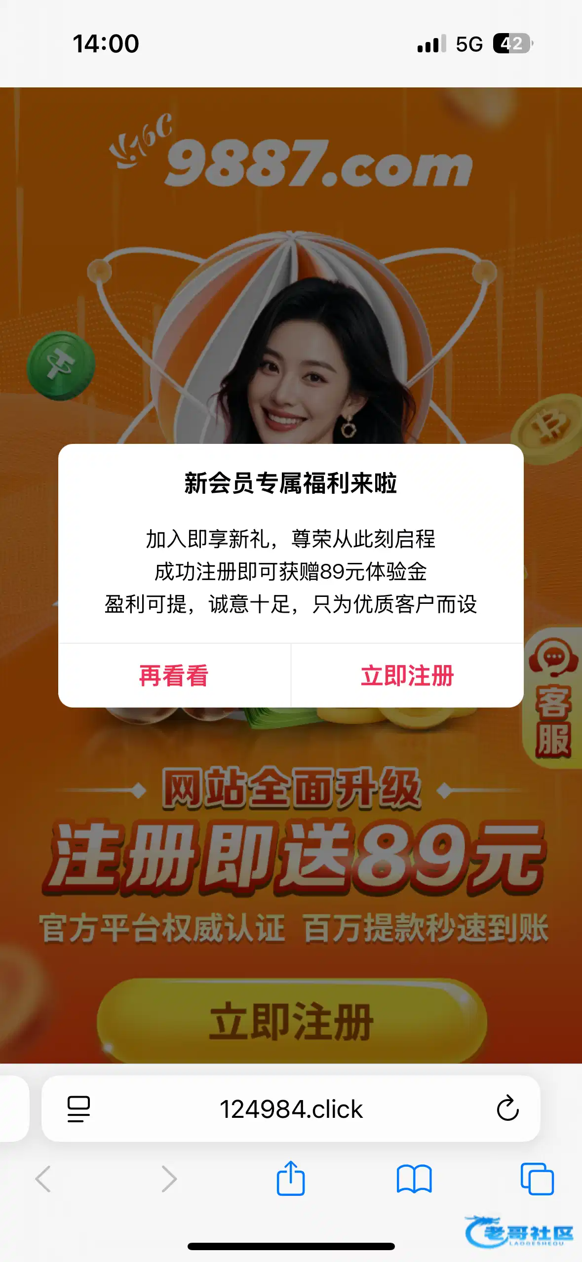 输入其他网站被劫持到这台子的,以前有号了,这次是拿别人名字注册的。