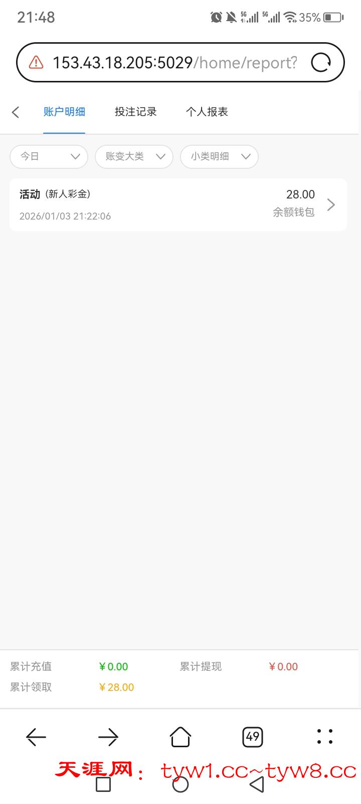 感谢兄弟分享 注册了一下直接送了28 下了100 后面留了30不给水了