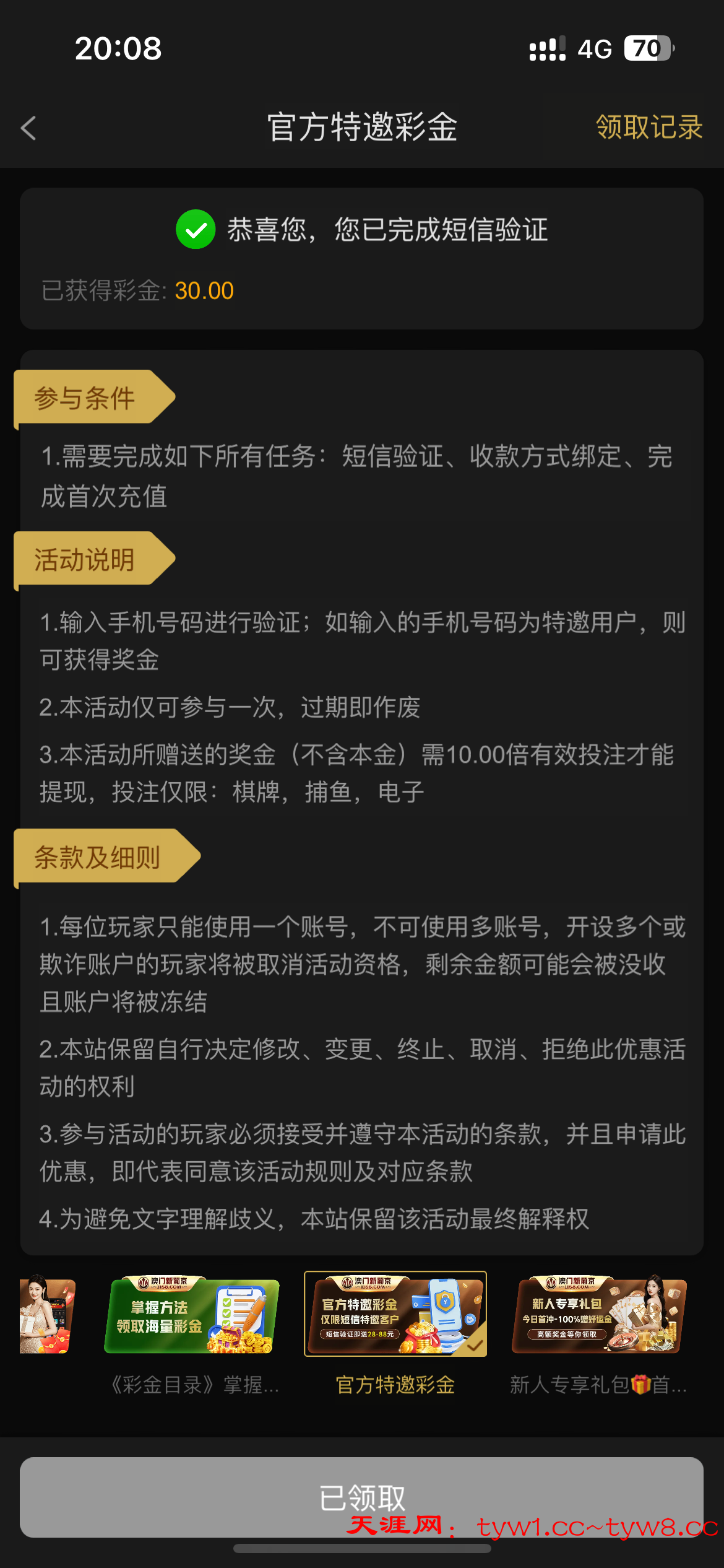 我无聊上去看看然后要充值才可以领我充了50一把没了然后领了30提250秒到
