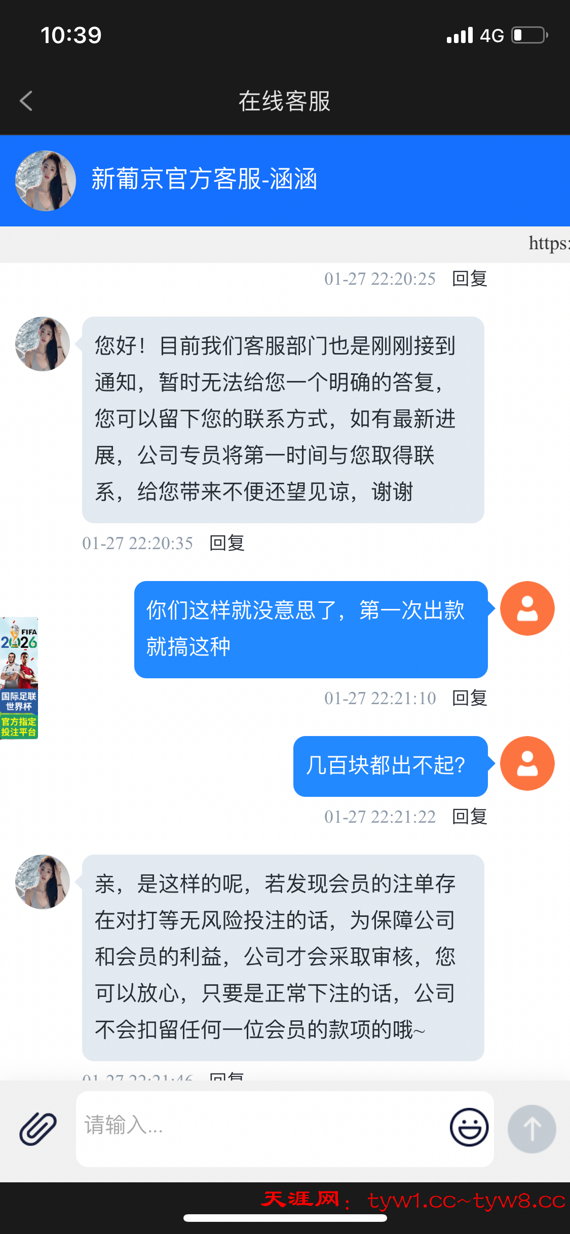 我还是充值第一次首存输了,然后第二首存充值领了8块。充值两次,提款几百块,说我违规投注,直接号都登录不上去了,格局太低了。正常充值都黑!!