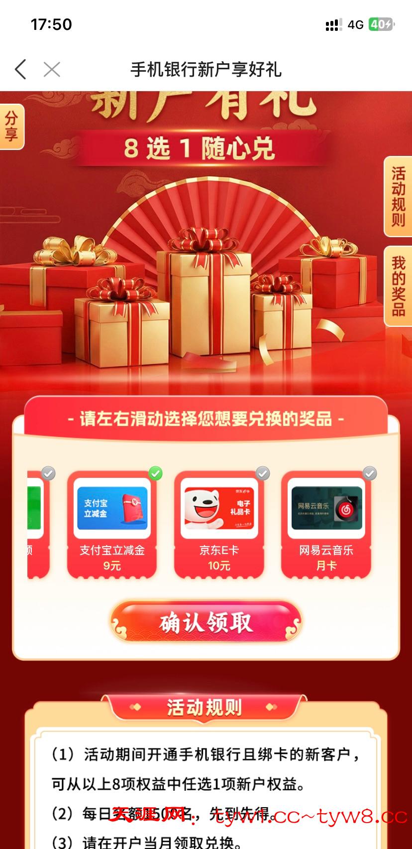 下载微商银行app页面点活动进去8选1自己选有微信支付宝立减金还有e卡