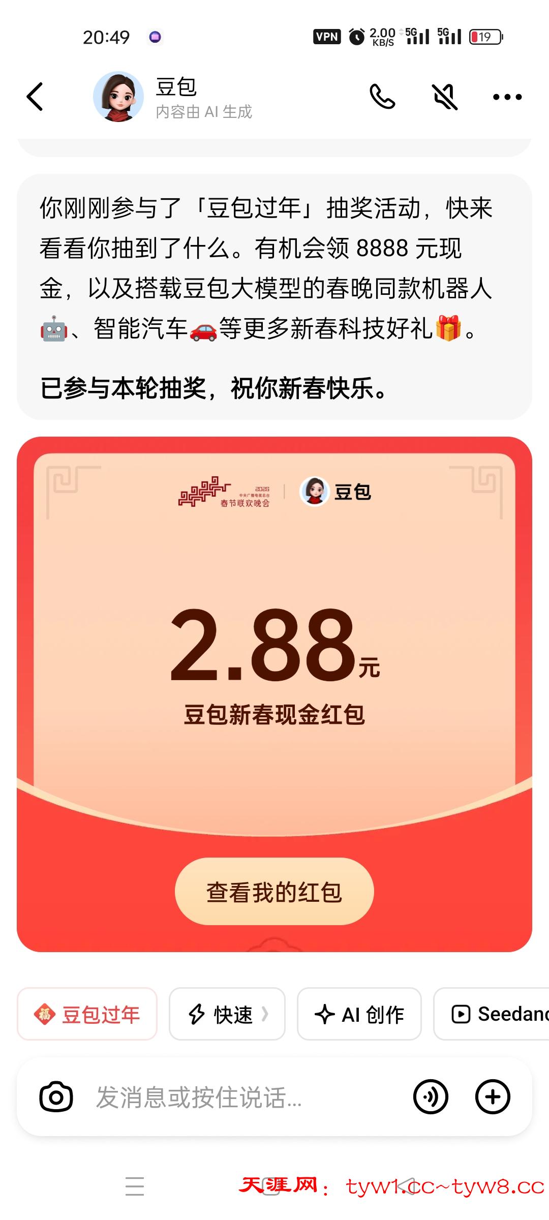 今天除夕豆包跟元宝的红包都比往常的大,兄弟们快冲啊