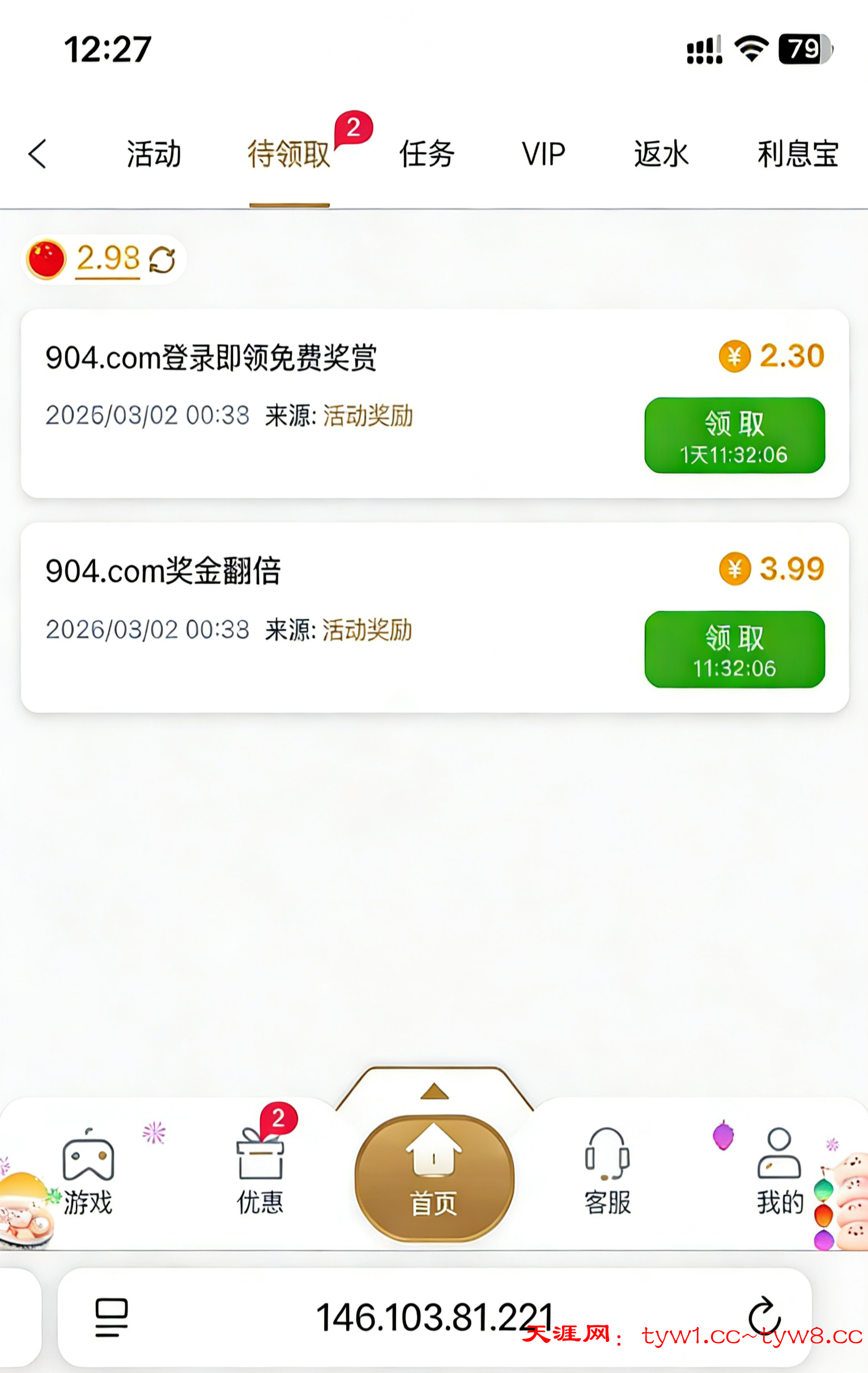网址 904.com 这两天有充值记录的上去看看 没有充值记录也有个两三块