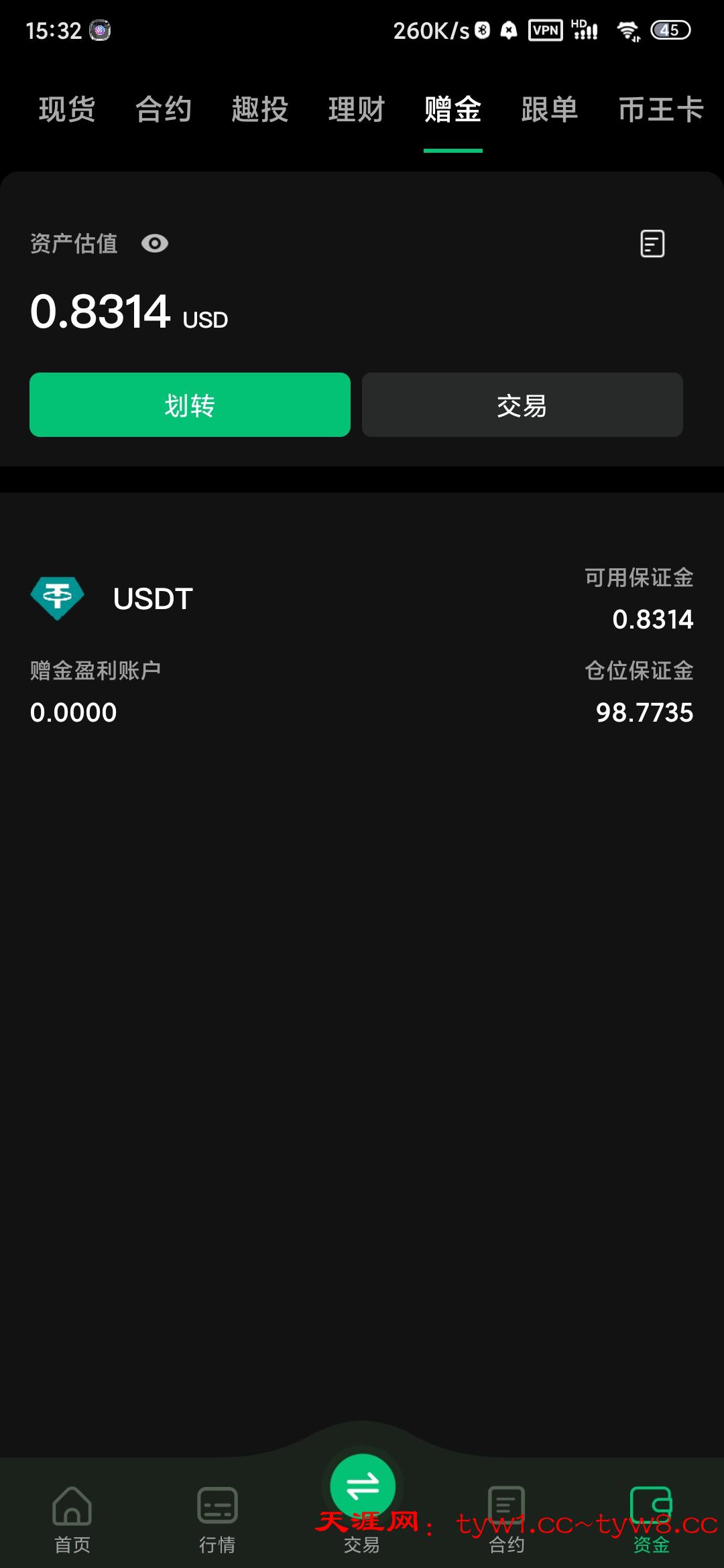 跟之前一样100u合约一次性盈利100u就能转出提现
