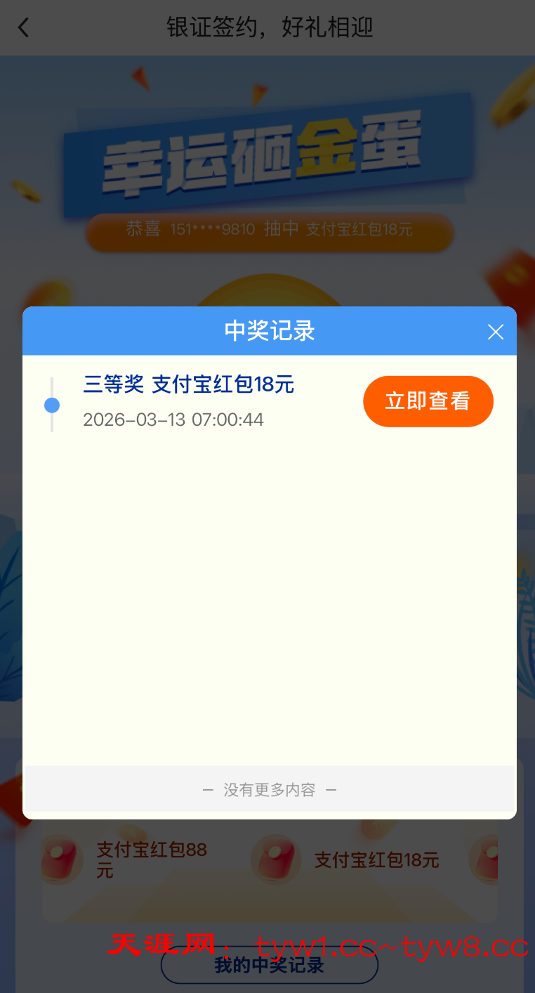 中奖18元。感谢