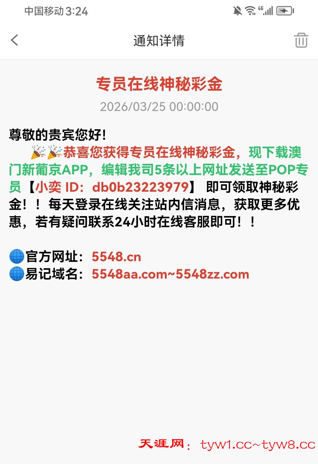 站内信收到这个消息的去添加客服领神秘彩金 我只领了8 我之前充过100 我没打出来 打出来的反馈下