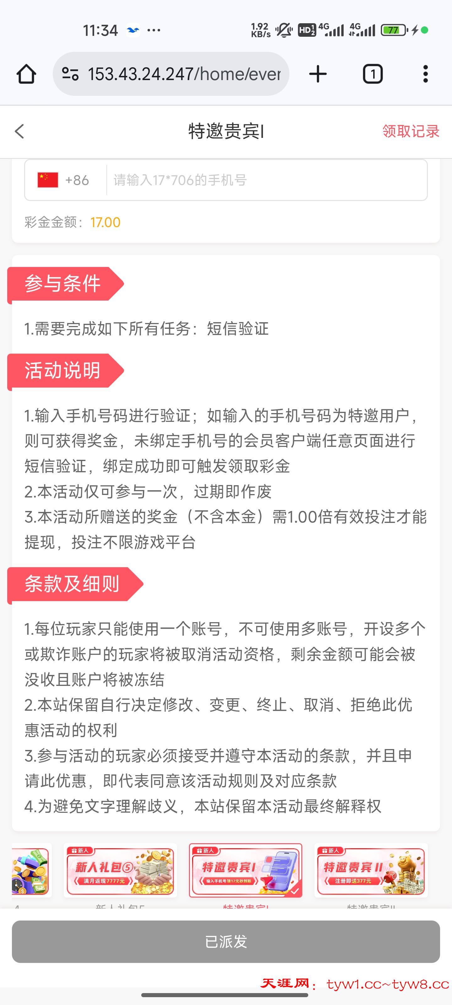 验证手机号领17彩金,自己测试,我没打出来,但昨晚看到好几个老哥都打出来了,被黑自负,请勿充值