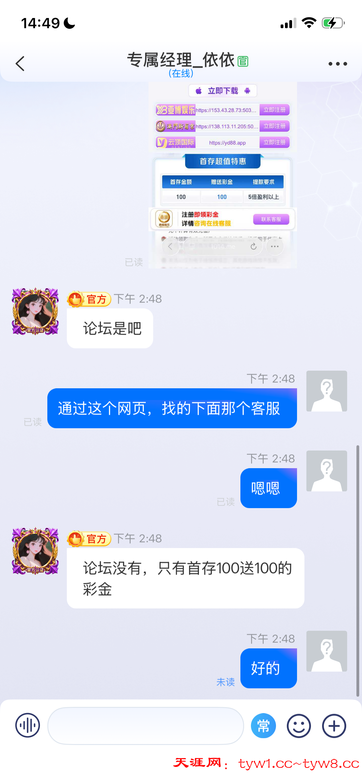 进去以后先不要注册,找下面的客服问怎么领取之类的,他会发一个链接,这3个台子都可以申请,一个一个区申请,重复这样都步骤,3个台的每个海鸥的下载链接不一样,不通用,所以每次要去换浏览器问客服,3个台我都领了,出款是可以出的,我之前充值打过,但是这3个台的送的28,我都没有打出来,打出来的老哥反馈下